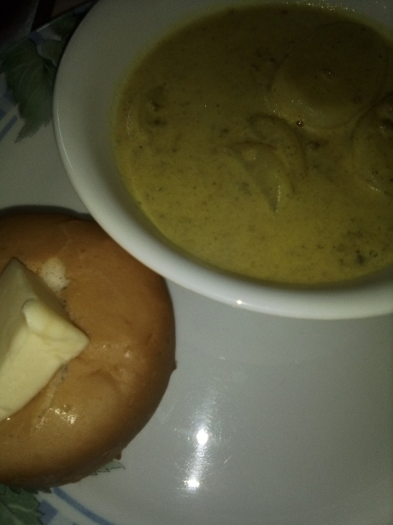 Well, hello there! Today I want to share a recipe that was the brainchild of Child #2. I helped her to perfect the recipe, but it was all her idea. It is a yummy, creamy, satisfying treat and a wonderful soup for a cold day! You will need: