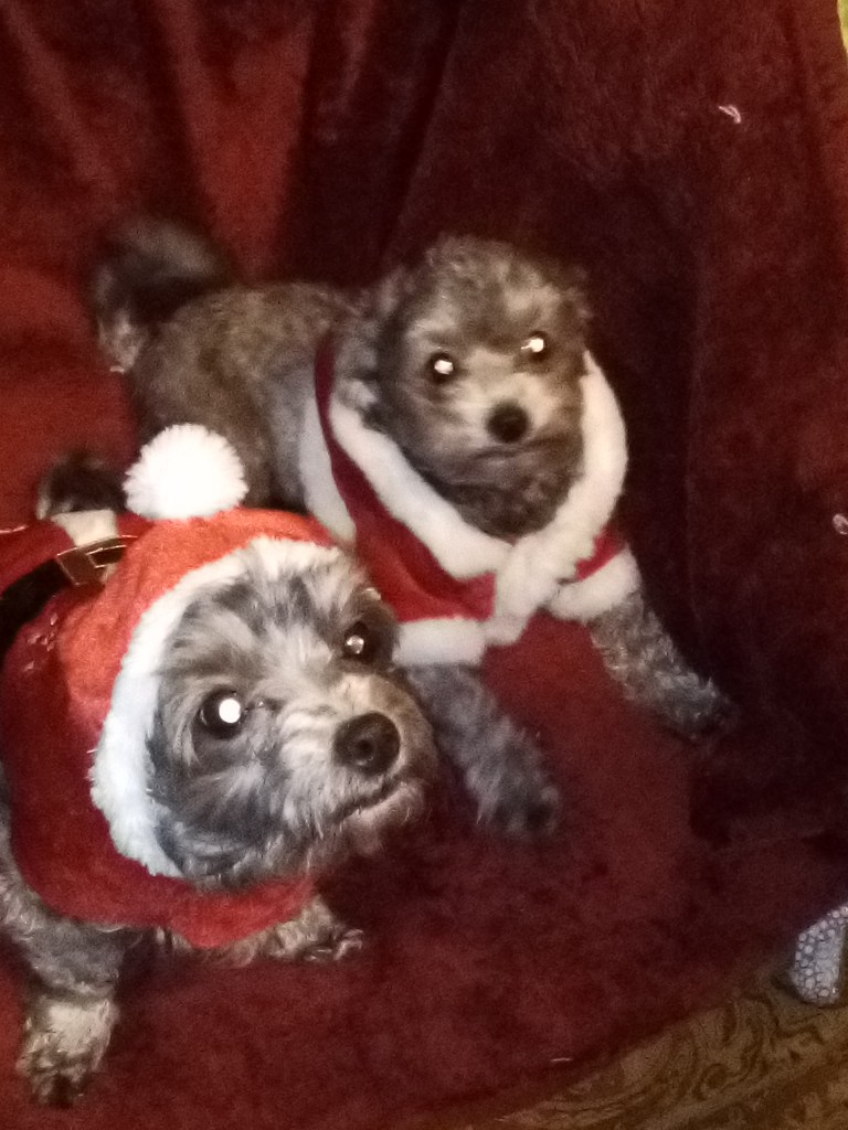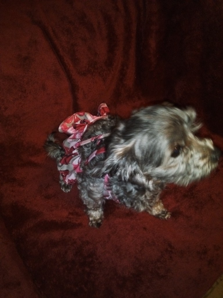 Who doesn’t like adorable pups dressed to impress, or at least to put up with their humans? As you may or may not be aware, we have three little ones: Ducky, or Dr. Donald Mallard, our big boy Morkiepoo (Maltese, Yorkie, and Poodle mix) at 10 pounds; Delilah, our big girl Maltipoo (Maltese and Poodle mix) at around 6 pounds; and our little girl, Lulu at about 5 pounds. Delilah and Lulu are twins.