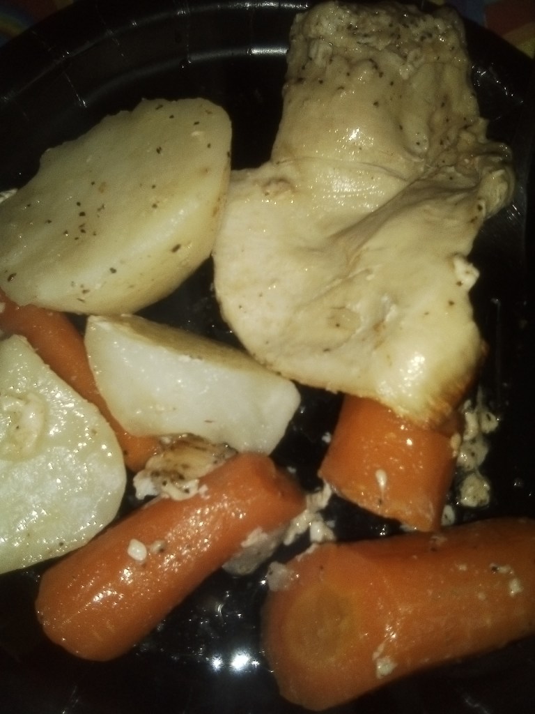 Spray your pan (I used a Dutch oven) with your cooking spray. Add chicken, potatoes, and carrots. Season with salt and pepper. Pour the Italian dressing over all of it. Cover and bake at 350°F for 45 minutes or until chicken reaches 165° F and potatoes and carrots can be pierced through with a knife. Enjoy!