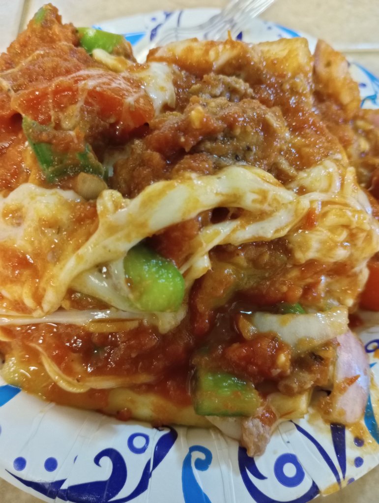 You will also need a 24 oz. jar of your favorite spaghetti sauce, 2 lbs. of lean ground beef, salt and pepper to taste, and 8 oz. of mozzarella cheese. Don’t forget the 9″ x 13″ pan and aluminum foil along with your favorite gf oil spray!