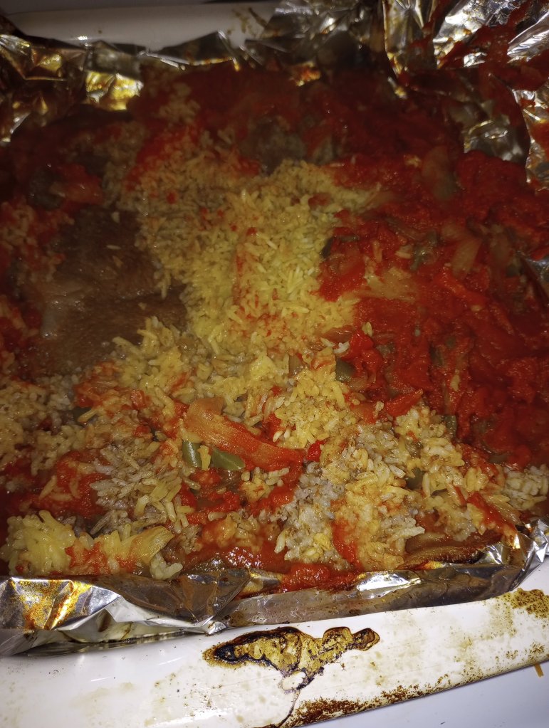 He also salted, peppered, onioned, and garliced the roast. Then, when he has browned it in the oven, stuck three cloves of garlic down into it. He promised me a piece, but I had to leave before it was done cooking. I’m kind of hoping that he saves me a piece for lunch tomorrow! Oh, who am I kidding? It will be breakfast!!!
